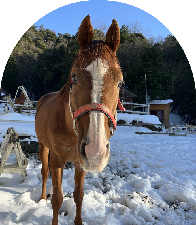 宮津で千の夢を乗せて走る馬です。